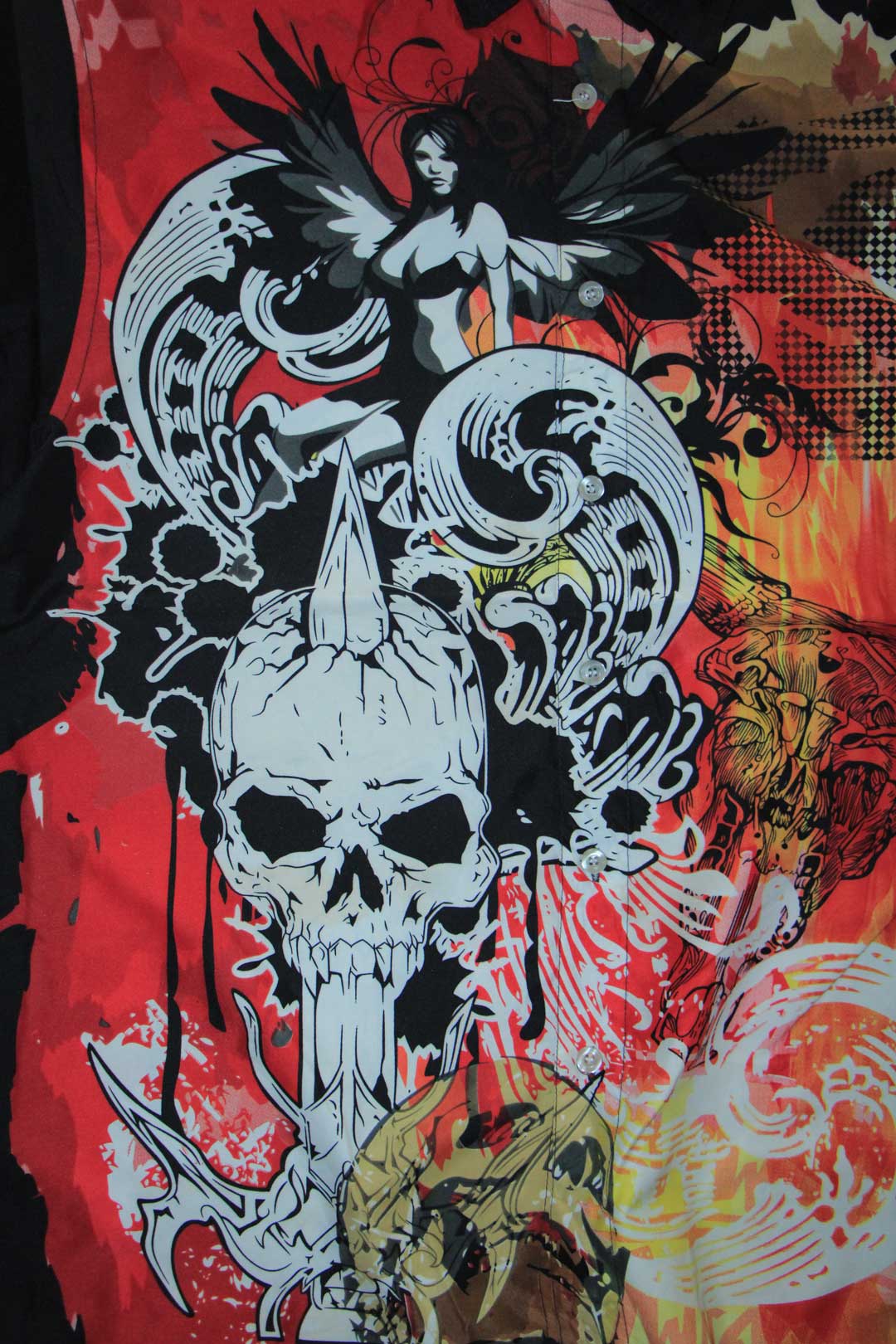 BIKER SHIRT BLUEZ BUTTON UP SKULL WEARABLE ART GOTH ROCK