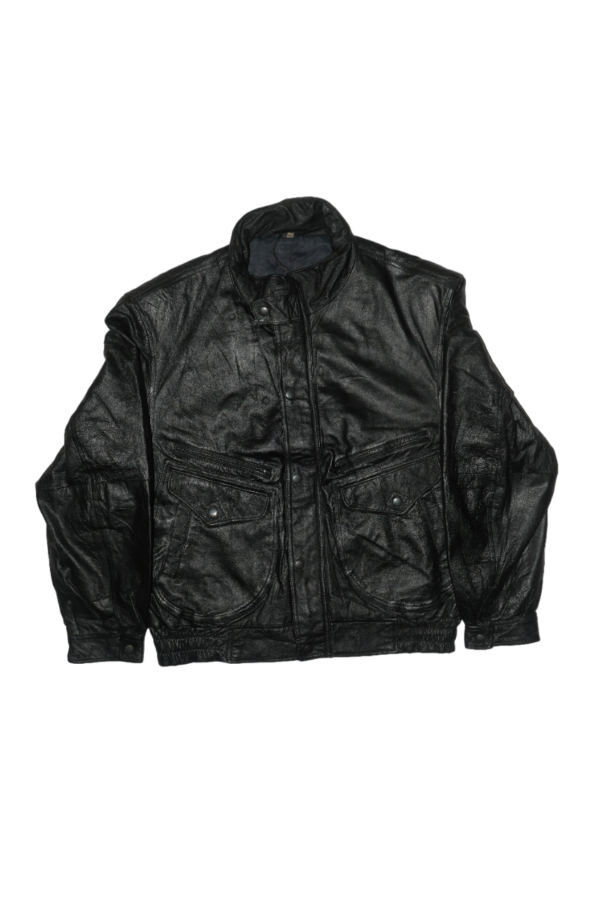 90s Vintage Leather Utility Bomber Biker Jacket